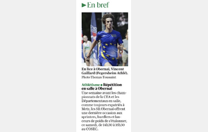 Résultats du meeting U16-SE indoor du samedi 03 janvier 2026 au COSEC d'Obernai.